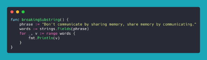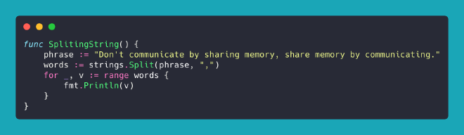 phrase := "Don't communicate by sharing memory, share memory by communicating."